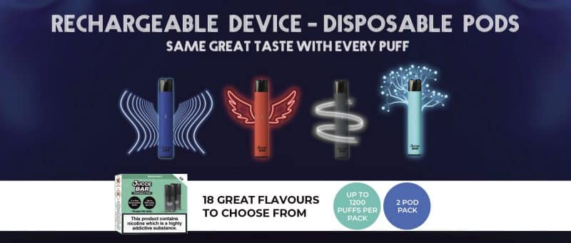Conoce el nuevo Jucce Bar, un vapeador recargable con cápsulas desechables precargadas con todos tus sabores Jucce favoritos. Perfecto para llevarlo en el bolsillo o para vapear sobre la marcha, este es un pequeño pero maravilloso kit de vapeo que cualquier vapeador disfrutará. ¡Consigue el tuyo hoy mismo!