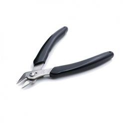 - Cizalla o tijeras de pinza: usaremos esta herramienta para cortar alambre metálico, para eliminar el sobrante de nuestras resistencias, ya sea para acortar las patas o durante la manufactura de una nueva resistencia.